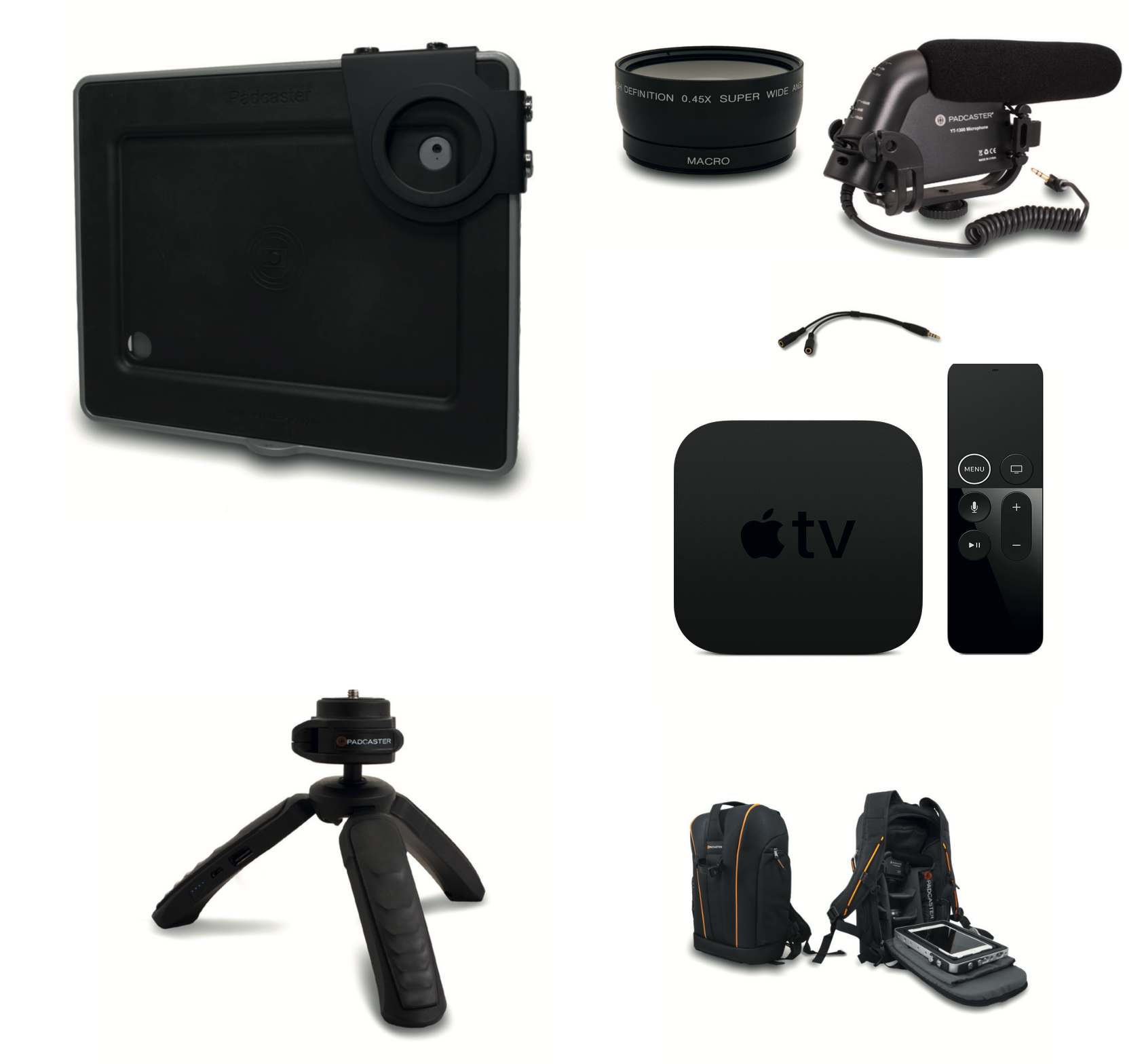 - 1 x wide-angle lens to screw onto the PadcasterTM frame